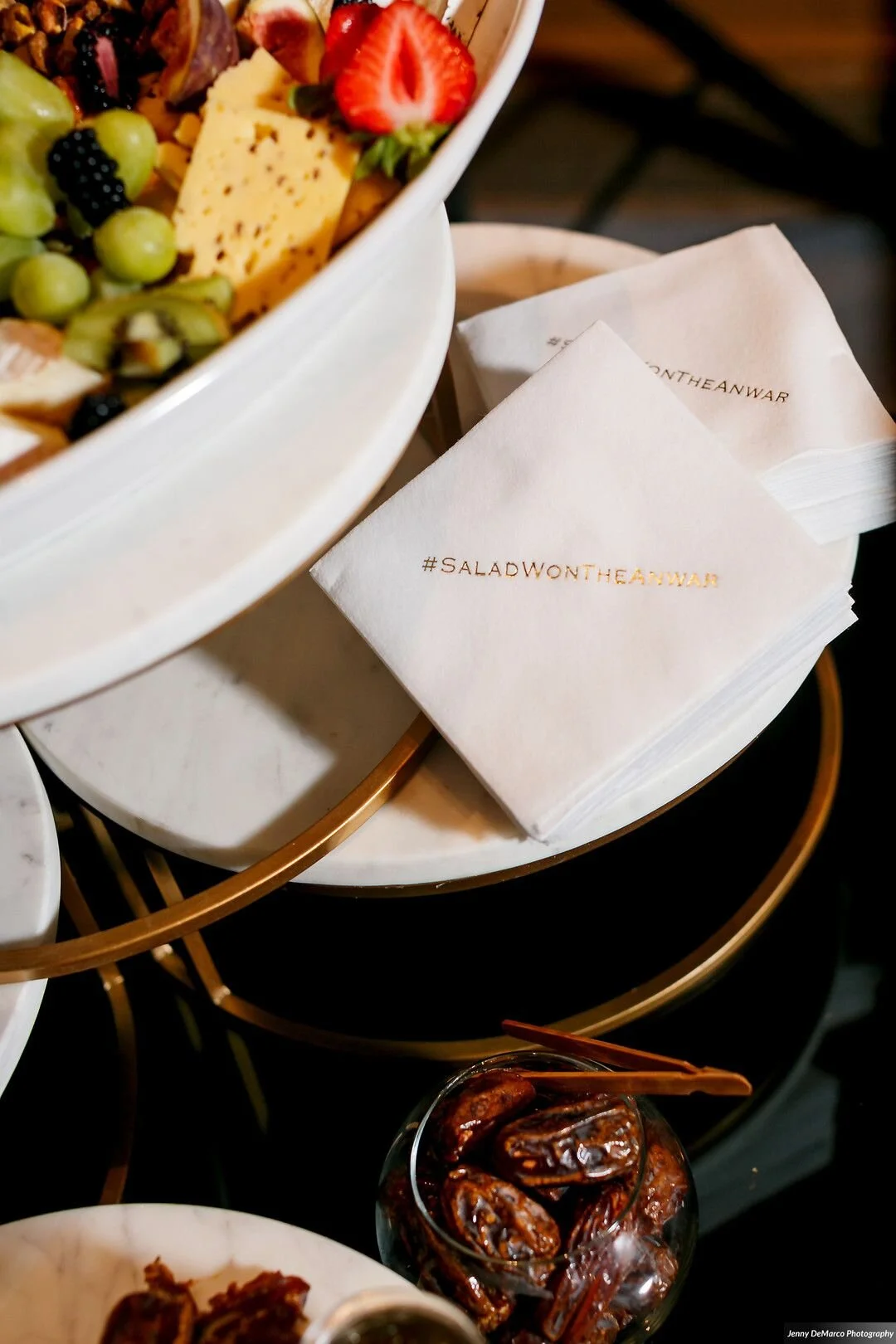 Leslie made sure to note to new brides not to stress at the what can be an overwhelming task of wedding planning. With a strong team of creative members and planners behind her, this day was perfect! We helped make her wedding suite super personalized with a custom watercolor of the venue inside the envelope liner, as well as her cat Louie in their wedding crest! We love adding these fine art details that level up the work and also touch heartstrings!